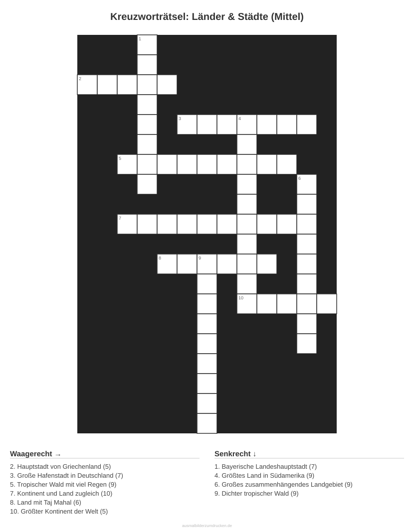 Kinderbuch erstellenKreuzworträtsel: Länder & Städte (Mittel) - kostenlos herunterladen