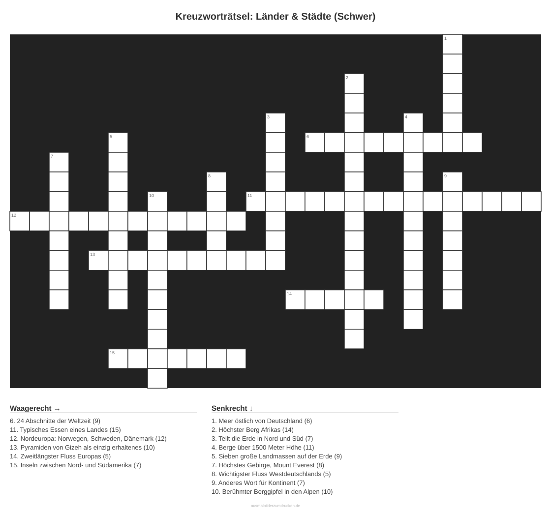 Köpfe rauchen lassen mit „Kreuzworträtsel: Länder & Städte (Schwer)“. Dieses Motiv aus dem Bereich Länder eignet sich besonders für die Kleinsten.