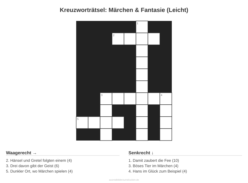 Kreuzworträtsel: Märchen & Fantasie (Leicht)
