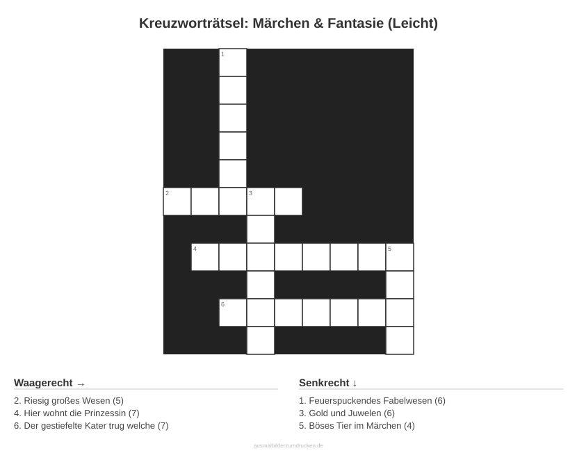 Kreuzworträtsel: Märchen & Fantasie (Leicht) - kostenlos herunterladen