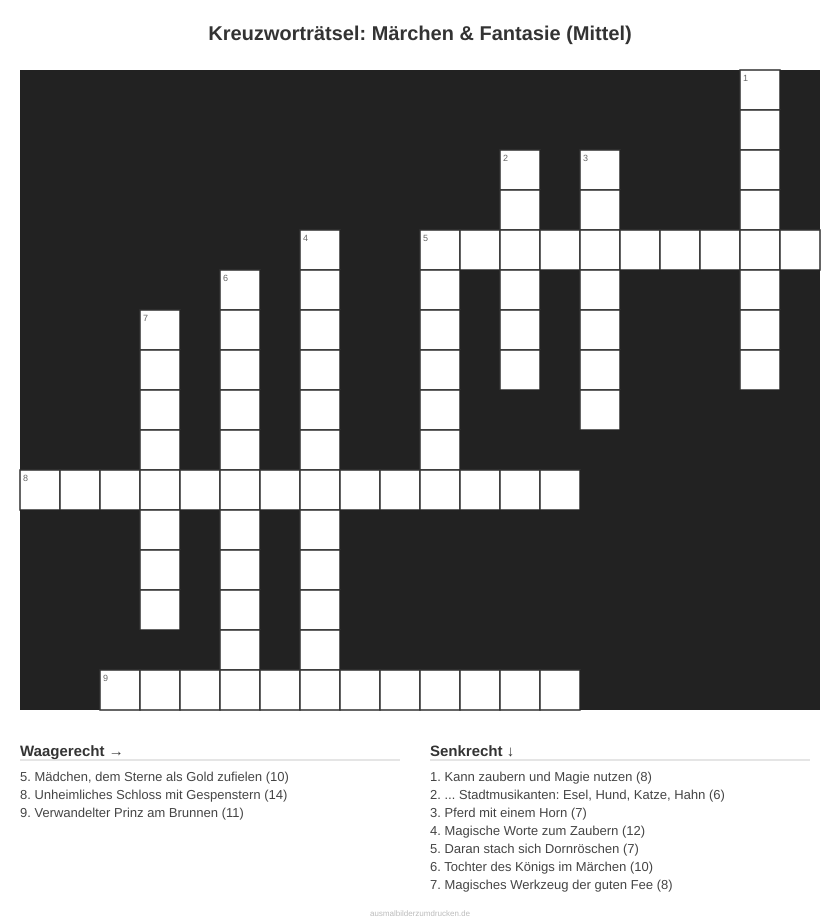 Kreuzworträtsel: Märchen & Fantasie (Mittel)