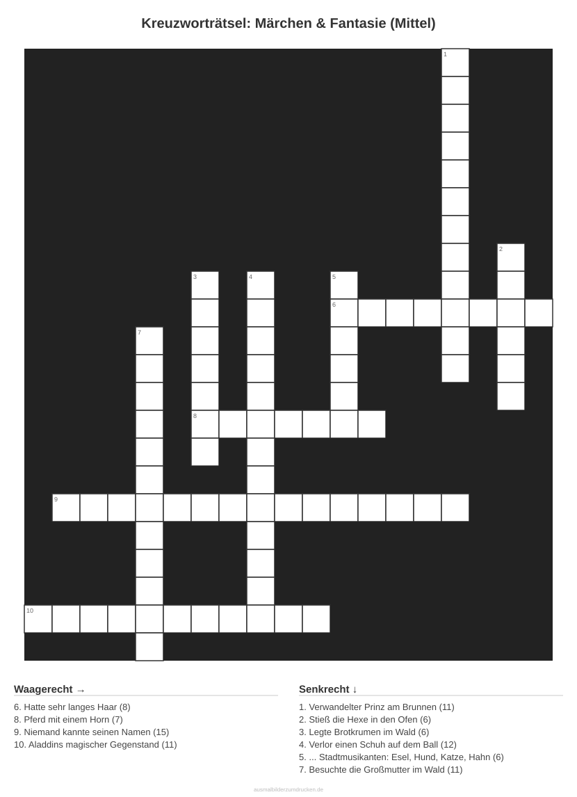 Kreuzworträtsel: Märchen & Fantasie (Mittel)