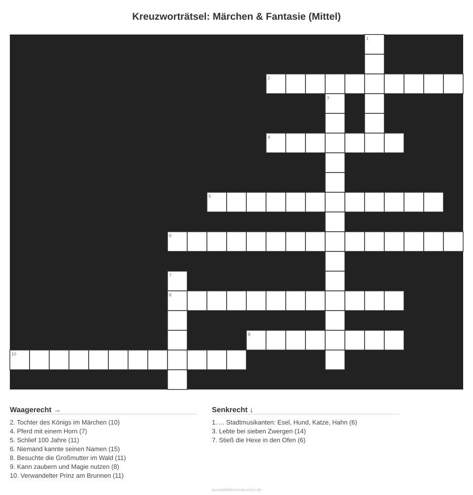 Kreuzworträtsel: Märchen & Fantasie (Mittel)