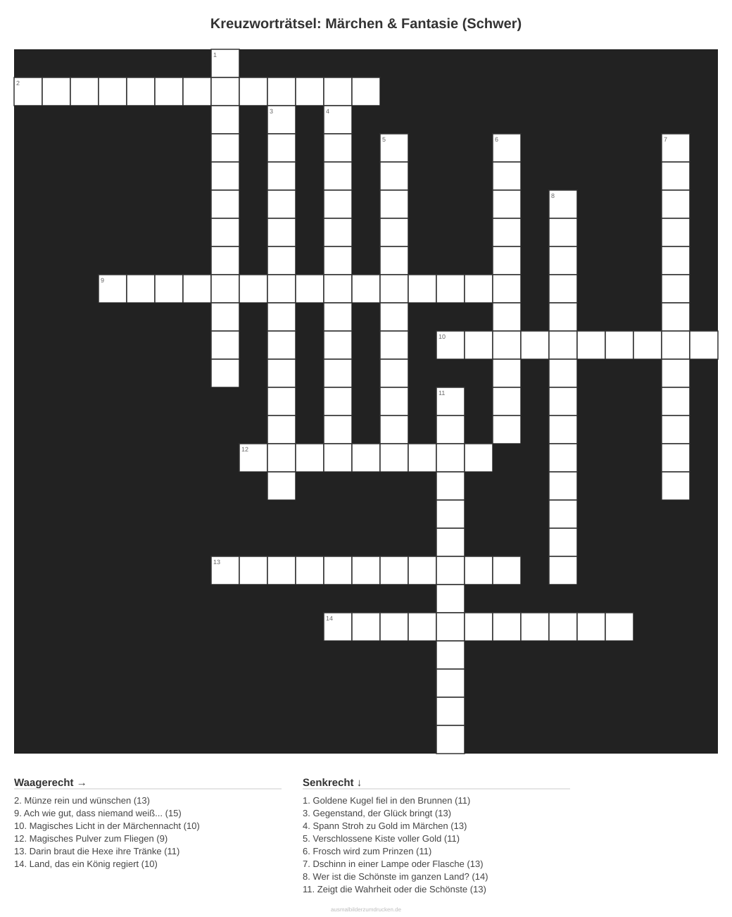 Kreuzworträtsel: Märchen & Fantasie (Schwer)