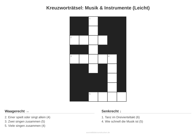 Kreuzworträtsel: Musik & Instrumente (Leicht) - kostenlos herunterladen