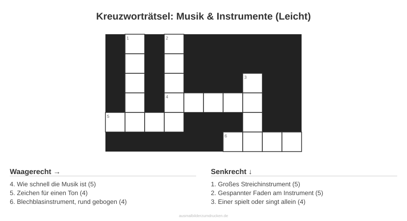 Kreuzworträtsel: Musik & Instrumente (Leicht)