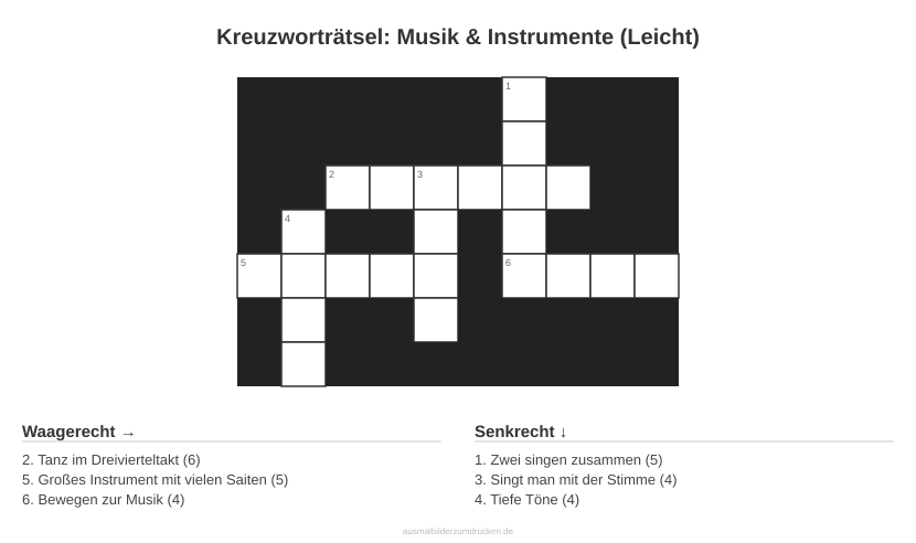 Kreuzworträtsel: Musik & Instrumente (Leicht)