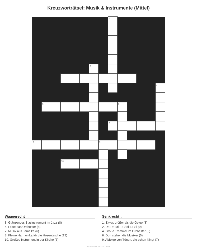 Kreuzworträtsel Kreuzworträtsel: Musik & Instrumente (Mittel) aus der Kategorie Musik - kostenlos ausdrucken
