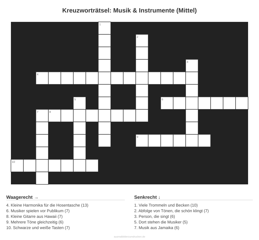 Kreuzworträtsel Kreuzworträtsel: Musik & Instrumente (Mittel) aus der Kategorie Musik - kostenlos ausdrucken