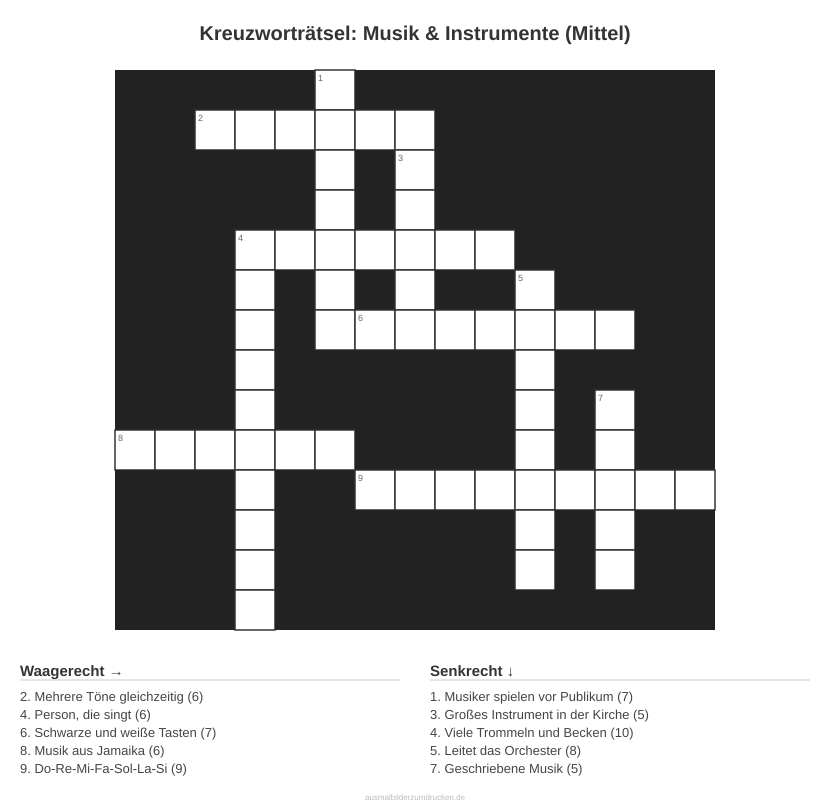 Kreuzworträtsel: Musik & Instrumente (Mittel)