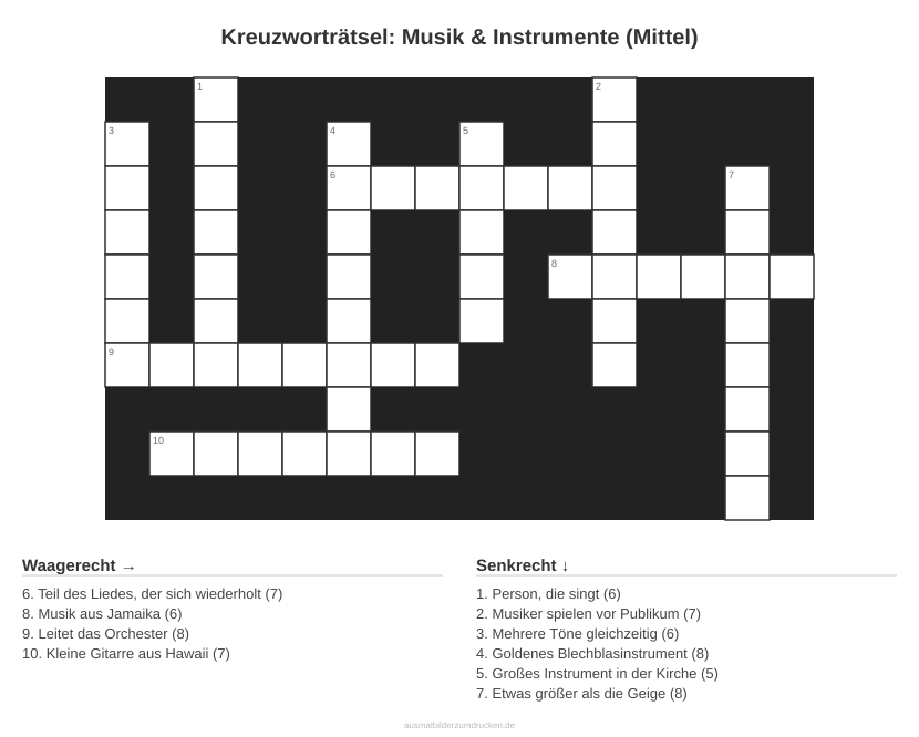 Kreuzworträtsel: Musik & Instrumente (Mittel)