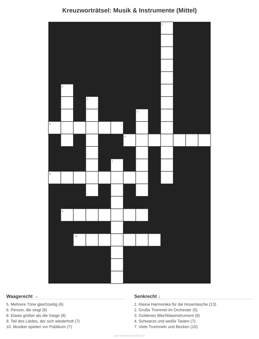 Kreuzworträtsel Kreuzworträtsel: Musik & Instrumente (Mittel) aus der Kategorie Musik - kostenlos ausdrucken