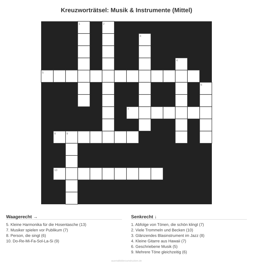 Kreuzworträtsel Kreuzworträtsel: Musik & Instrumente (Mittel) aus der Kategorie Musik - kostenlos ausdrucken