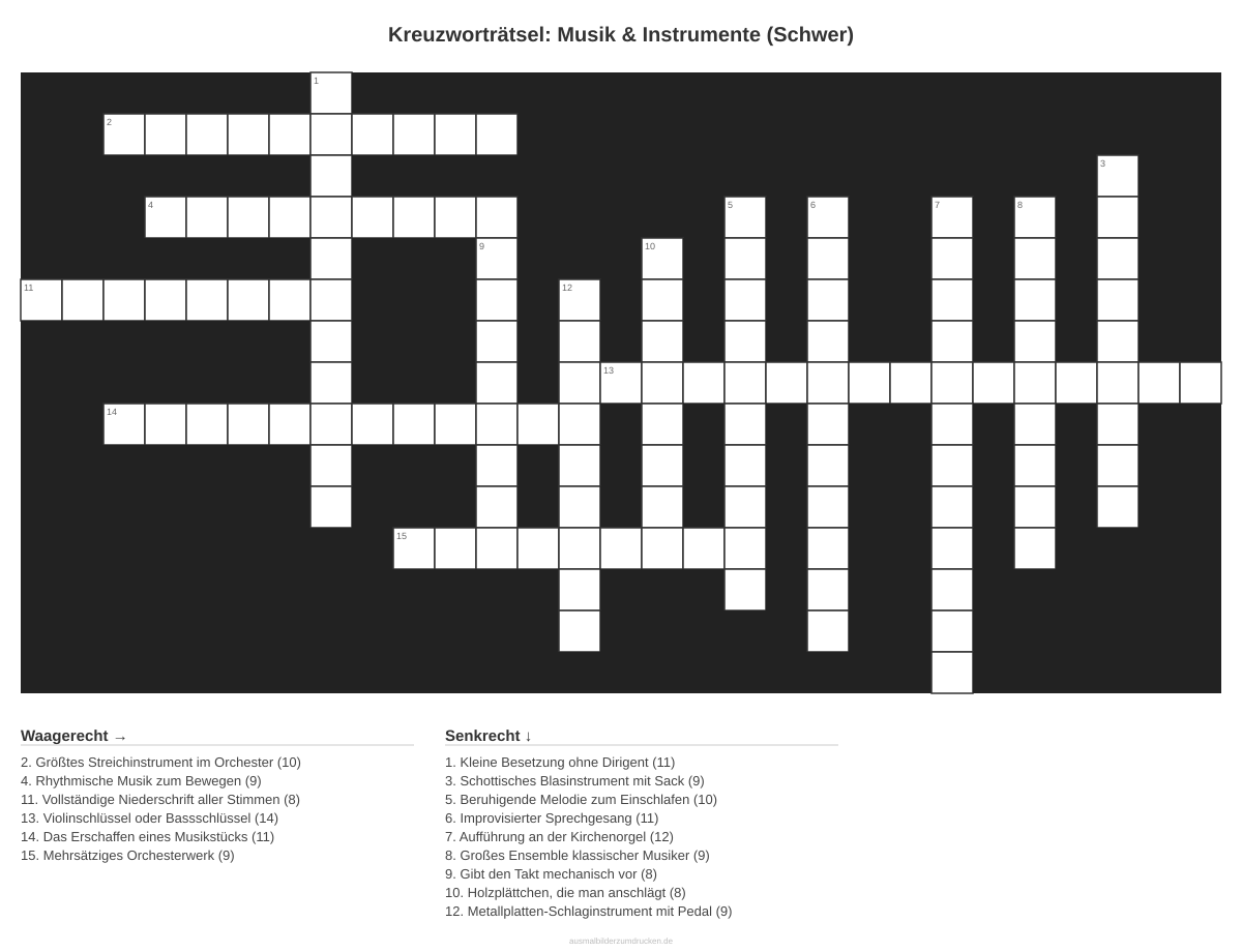 Kreuzworträtsel: Musik & Instrumente (Schwer)