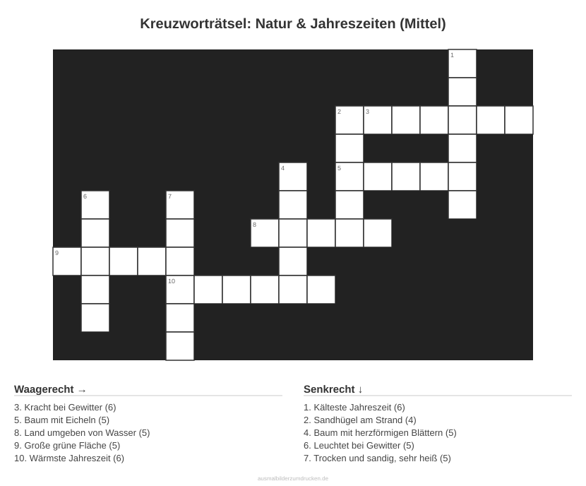 Kreuzworträtsel: Natur & Jahreszeiten (Mittel)