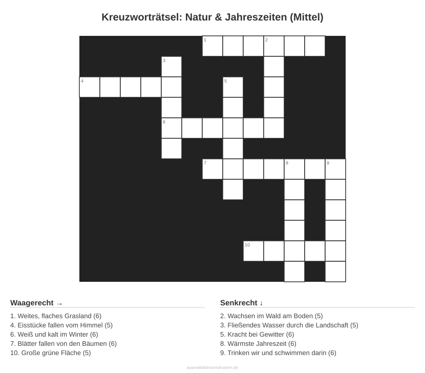 Kreuzworträtsel: Natur & Jahreszeiten (Mittel)