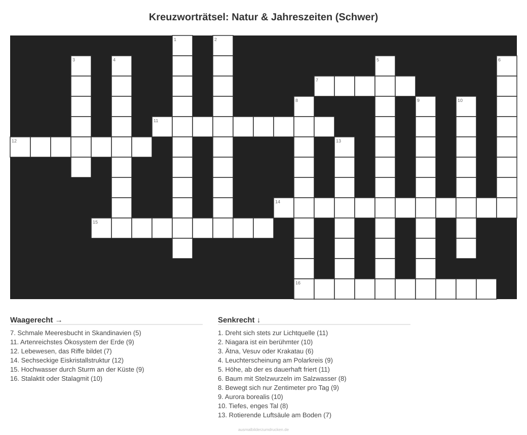 Köpfe rauchen lassen mit „Kreuzworträtsel: Natur & Jahreszeiten (Schwer)“. Dieses Motiv aus dem Bereich Natur eignet sich besonders für 11- bis 14-Jährige.