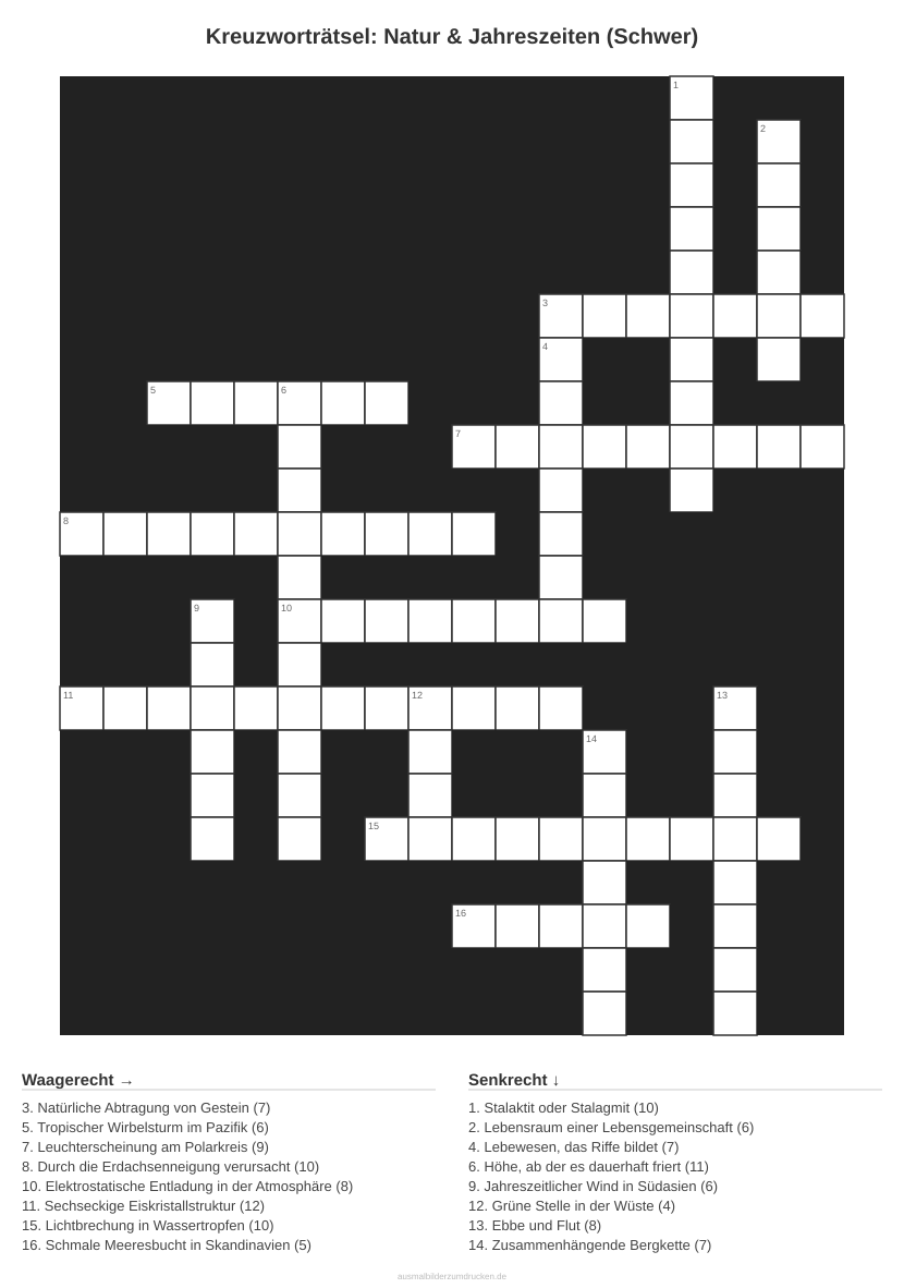 Köpfe rauchen lassen mit „Kreuzworträtsel: Natur & Jahreszeiten (Schwer)“. Dieses Motiv aus dem Bereich Natur eignet sich besonders für 11- bis 14-Jährige.