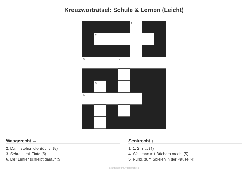 Kreuzworträtsel: Schule & Lernen (Leicht)
