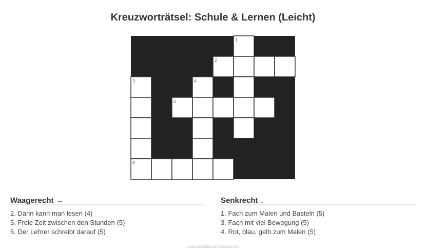 Kreuzworträtsel: Schule & Lernen (Leicht)
