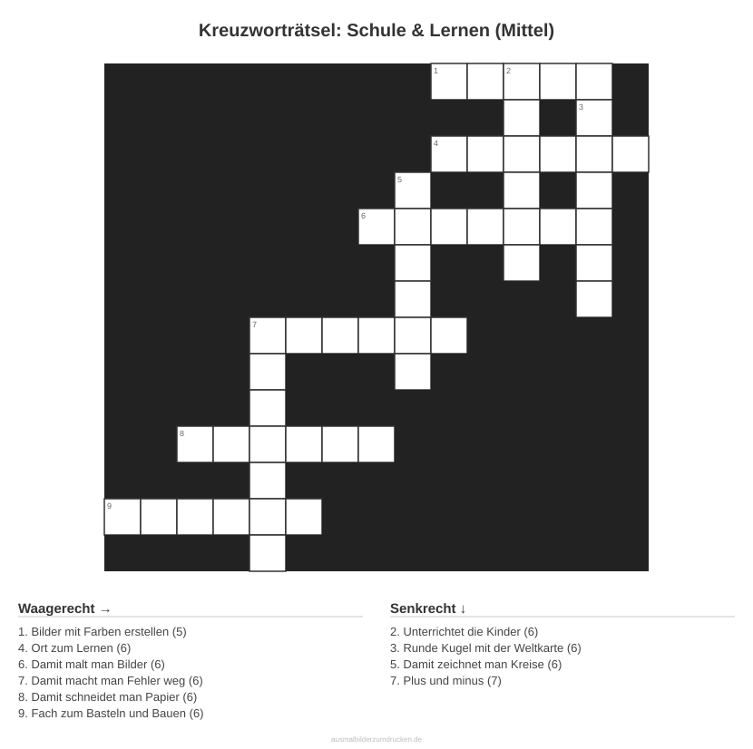 Kreuzworträtsel Kreuzworträtsel: Schule & Lernen (Mittel) aus der Kategorie Schule - kostenlos ausdrucken