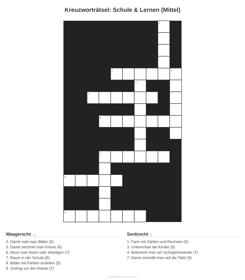 Kinderbuch erstellenKreuzworträtsel: Schule & Lernen (Mittel) - kostenlos herunterladen