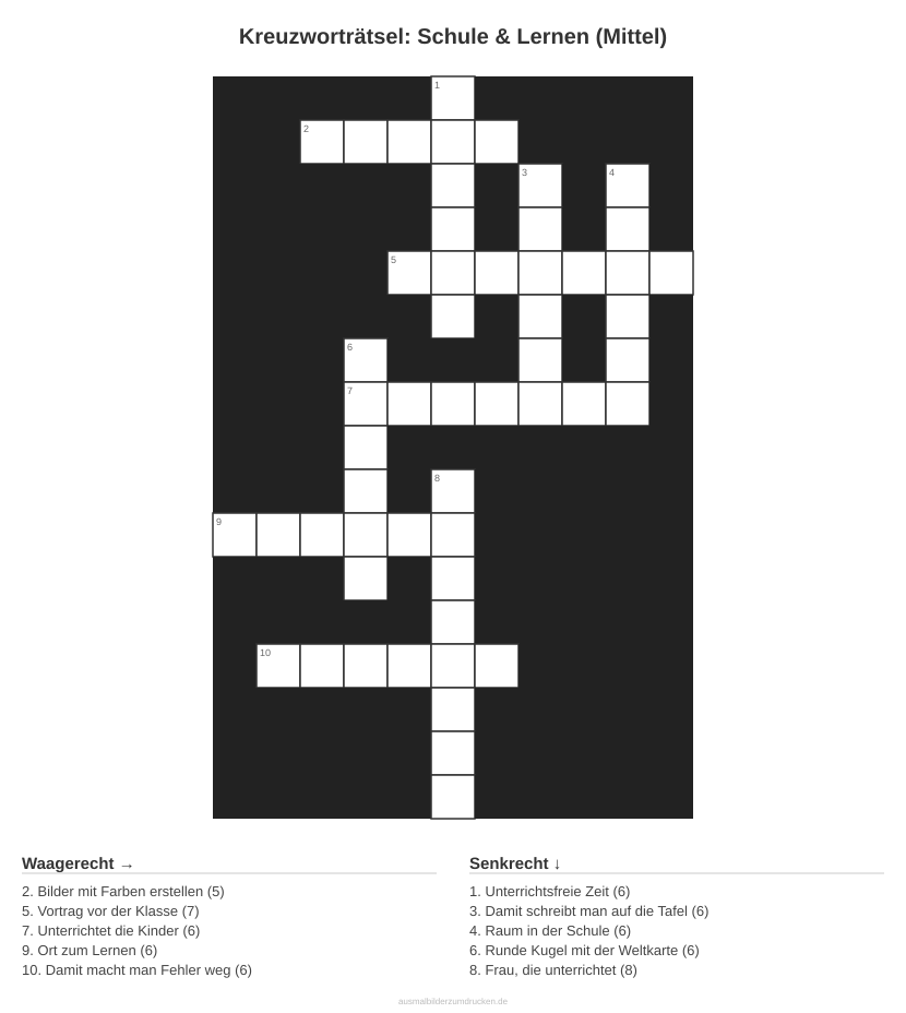 Kreuzworträtsel: Schule & Lernen (Mittel) - kostenlos herunterladen