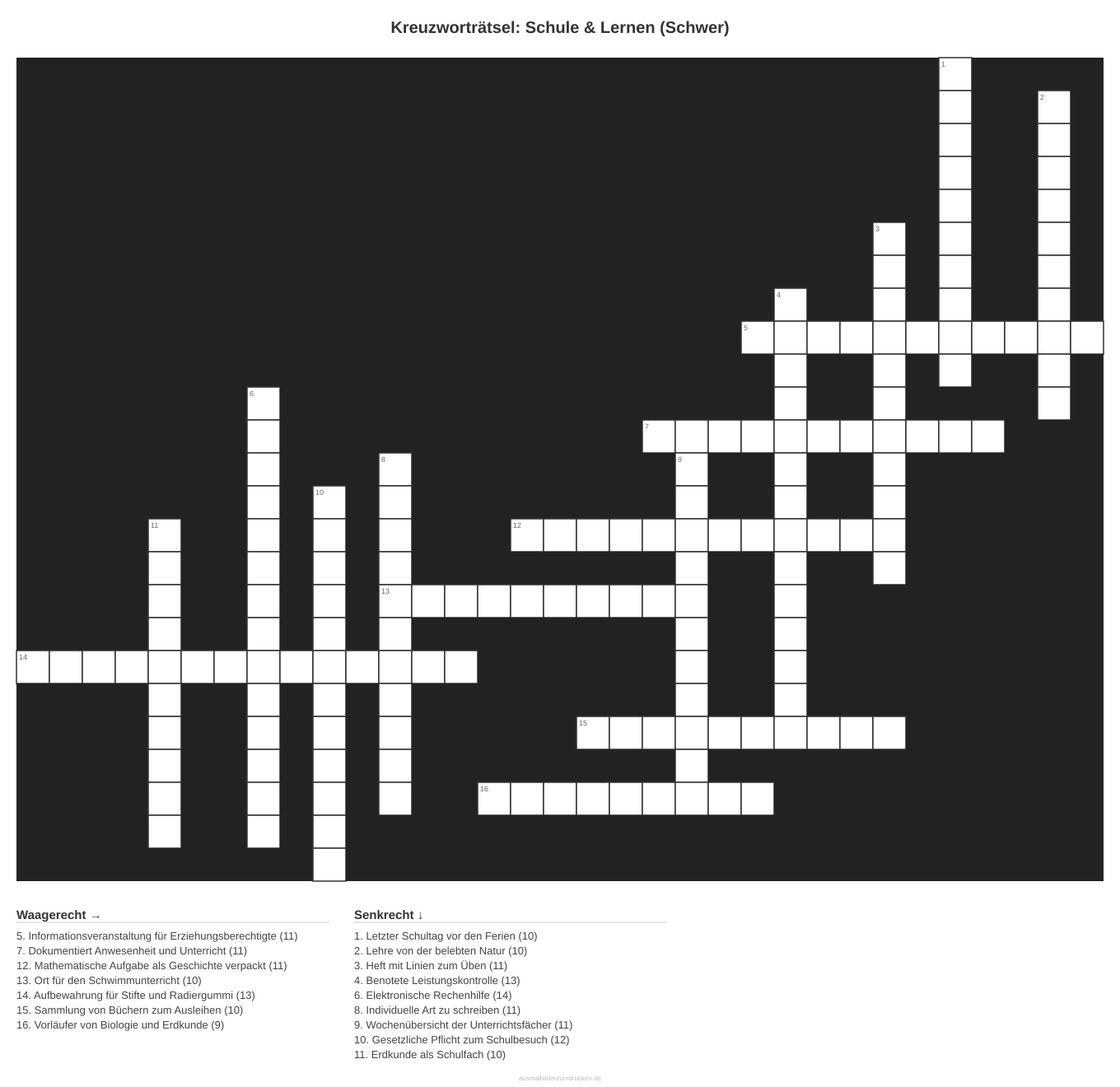 Kreuzworträtsel Kreuzworträtsel: Schule & Lernen (Schwer) aus der Kategorie Schule - kostenlos ausdrucken