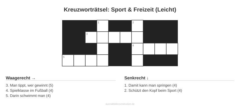 Kreuzworträtsel Kreuzworträtsel: Sport & Freizeit (Leicht) aus der Kategorie Sport - kostenlos ausdrucken