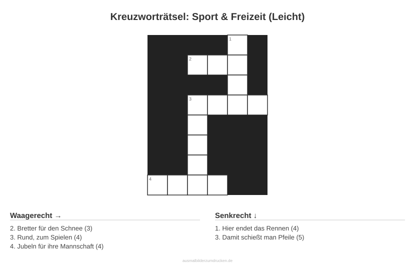 Kinderbuch erstellenKreuzworträtsel: Sport & Freizeit (Leicht) - kostenlos herunterladen