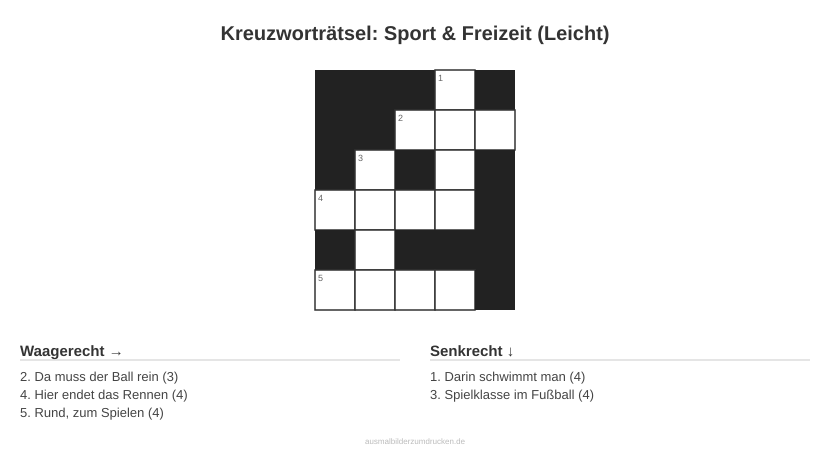 Kinderbuch erstellenKreuzworträtsel: Sport & Freizeit (Leicht) - kostenlos herunterladen