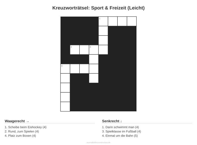 Kreuzworträtsel Kreuzworträtsel: Sport & Freizeit (Leicht) aus der Kategorie Sport - kostenlos ausdrucken
