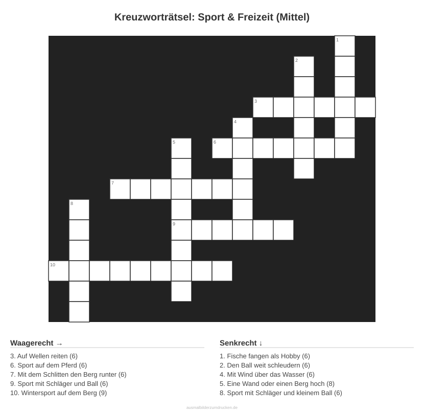 „Kreuzworträtsel: Sport & Freizeit (Mittel)“ - ein Kreuzworträtsel zum Ausdrucken. Dieses Motiv aus dem Bereich Sport eignet sich besonders für die Kleinsten.