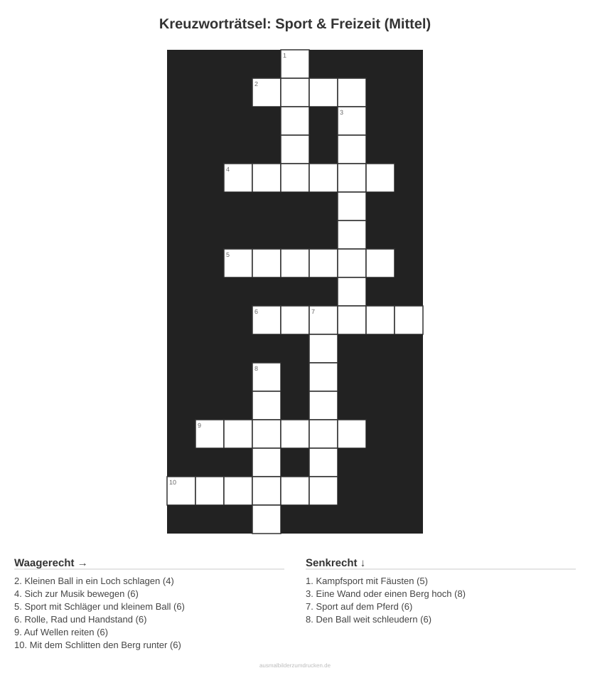 Köpfe rauchen lassen mit „Kreuzworträtsel: Sport & Freizeit (Mittel)“. Dieses Motiv aus dem Bereich Sport eignet sich besonders für Erwachsene und Jugendliche ab 15.