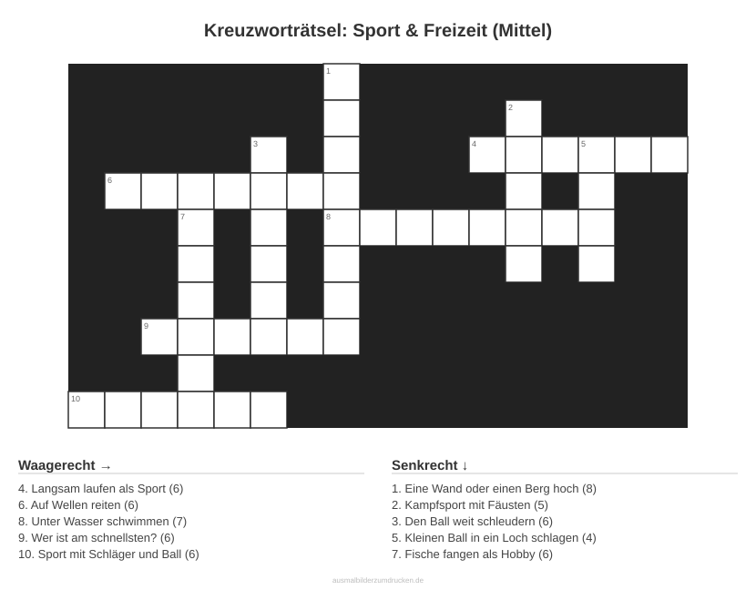 Kreuzworträtsel Kreuzworträtsel: Sport & Freizeit (Mittel) aus der Kategorie Sport - kostenlos ausdrucken