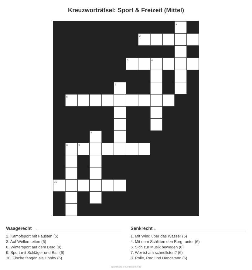 Kreuzworträtsel Kreuzworträtsel: Sport & Freizeit (Mittel) aus der Kategorie Sport - kostenlos ausdrucken