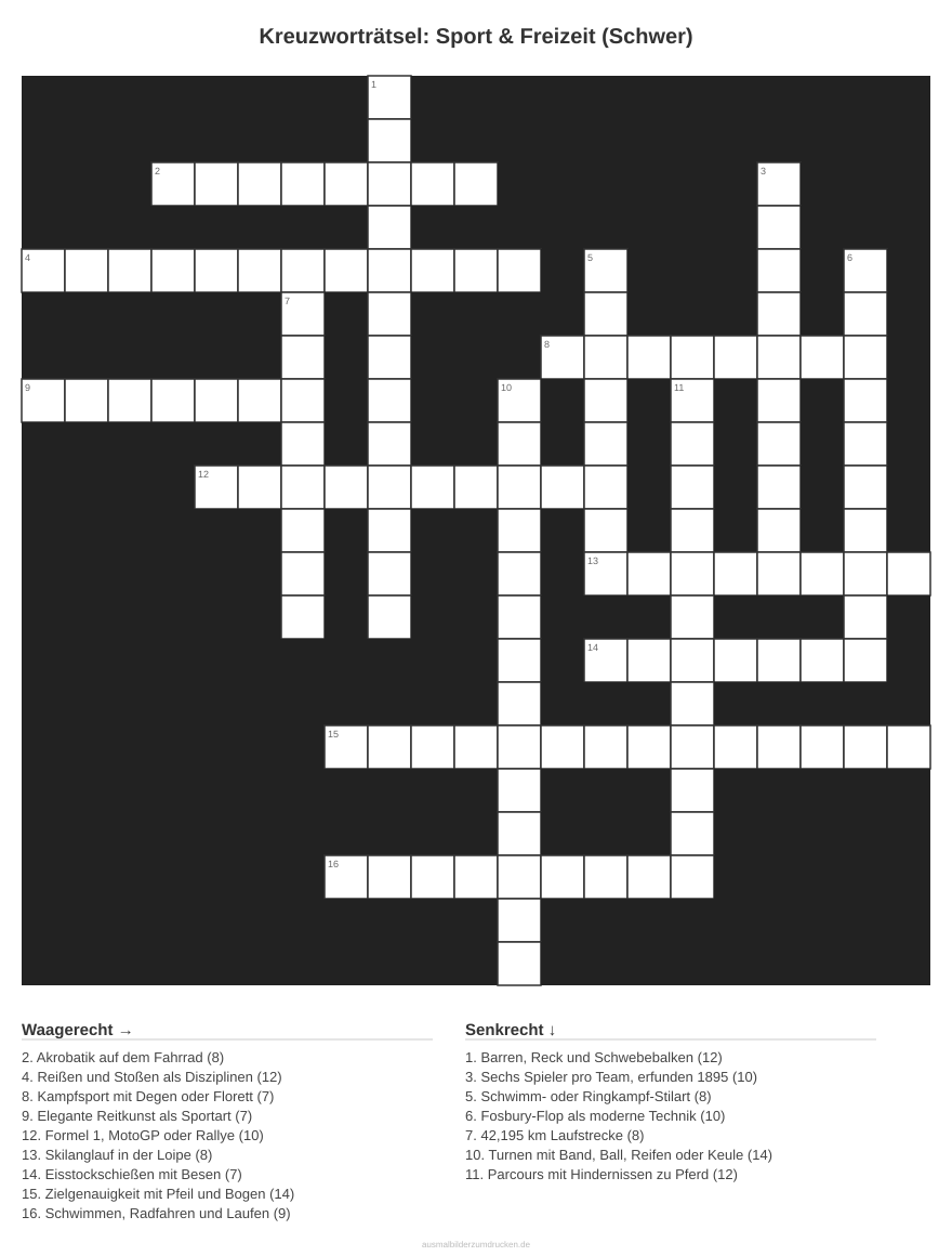 Kreuzworträtsel: Sport & Freizeit (Schwer)