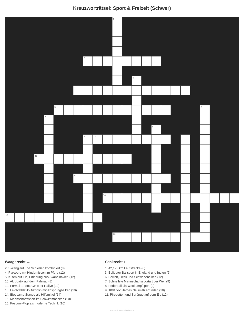 Kreuzworträtsel: Sport & Freizeit (Schwer)
