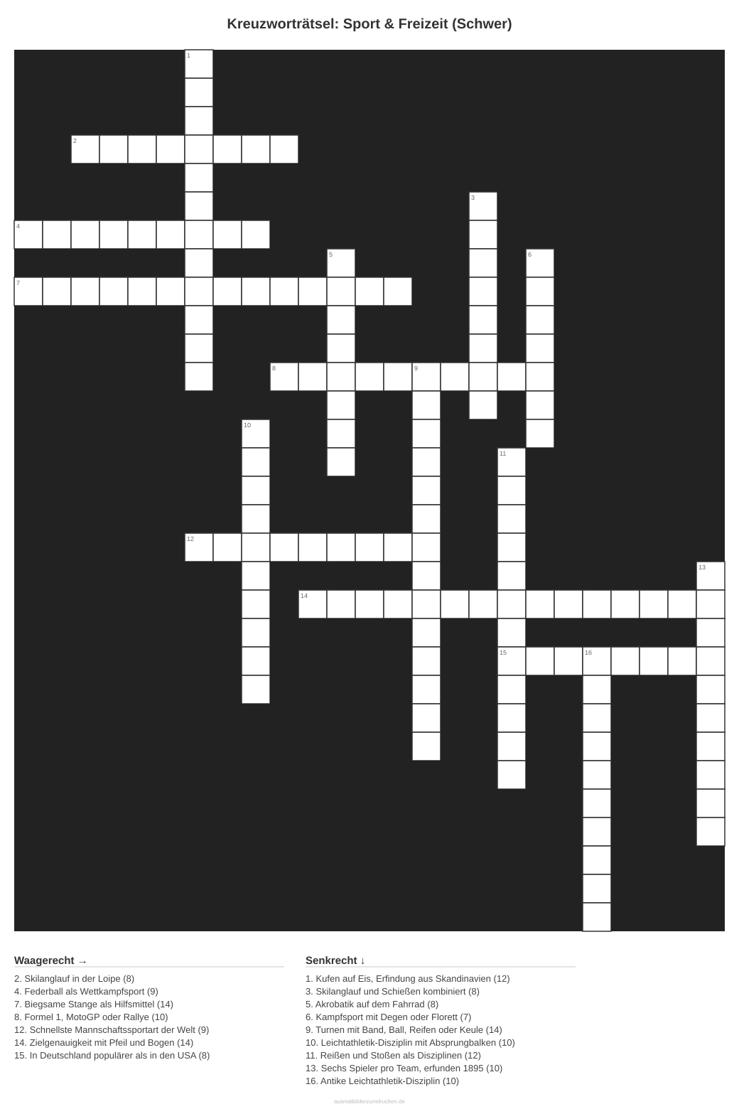 Kreuzworträtsel Kreuzworträtsel: Sport & Freizeit (Schwer) aus der Kategorie Sport - kostenlos ausdrucken