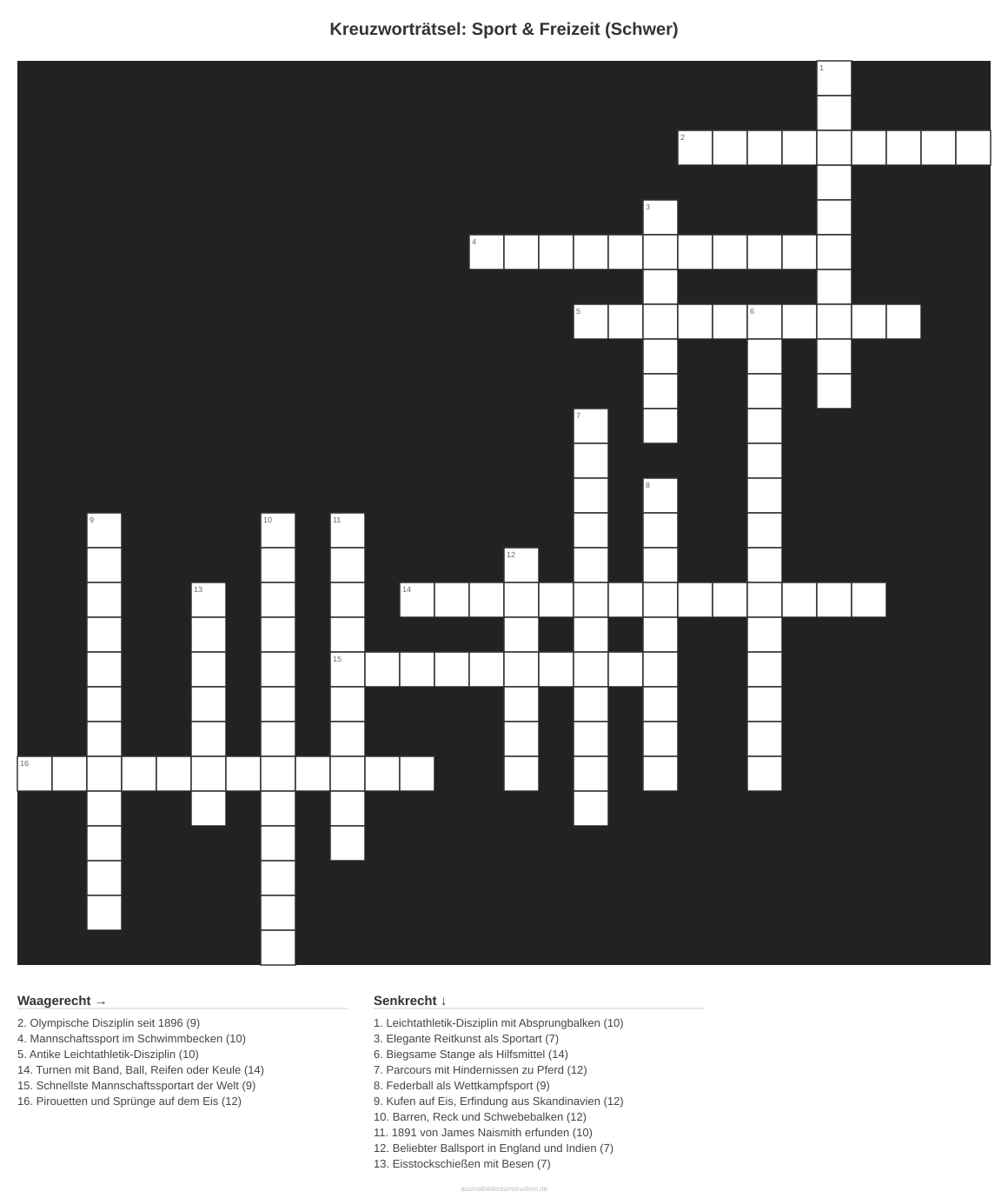 Kreuzworträtsel Kreuzworträtsel: Sport & Freizeit (Schwer) aus der Kategorie Sport - kostenlos ausdrucken