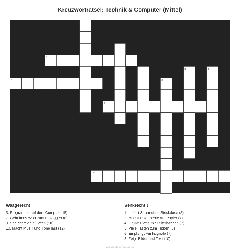 Kreuzworträtsel: Technik & Computer (Mittel)