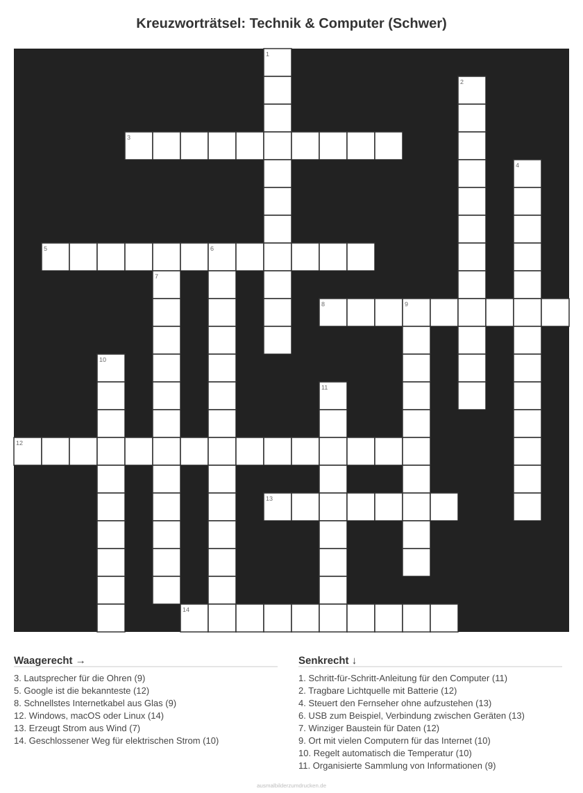 Kreuzworträtsel: Technik & Computer (Schwer)