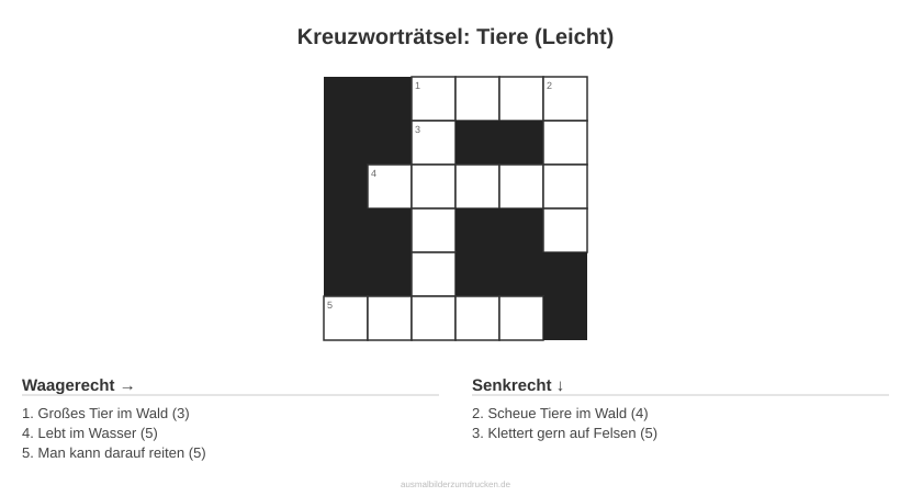Kreuzworträtsel: Tiere (Leicht) - kostenlos herunterladen