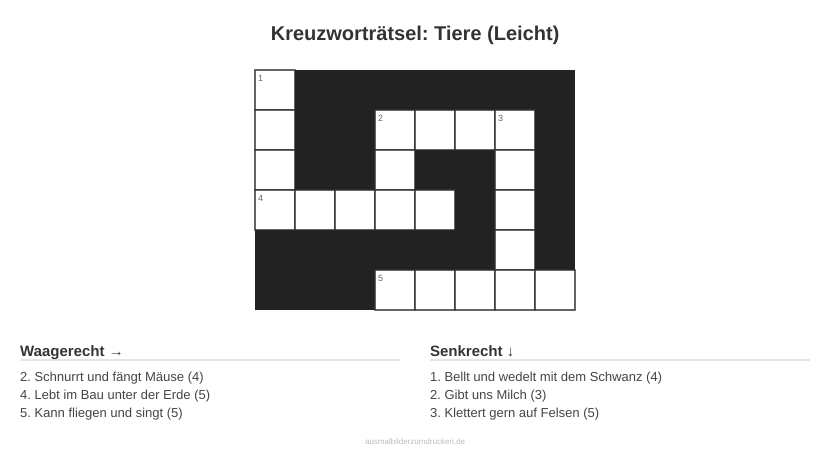 Kinderbuch erstellenKreuzworträtsel: Tiere (Leicht) - kostenlos herunterladen