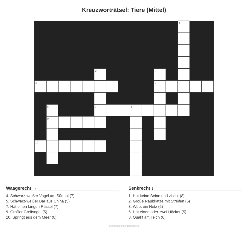 Kreuzworträtsel: Tiere (Mittel)