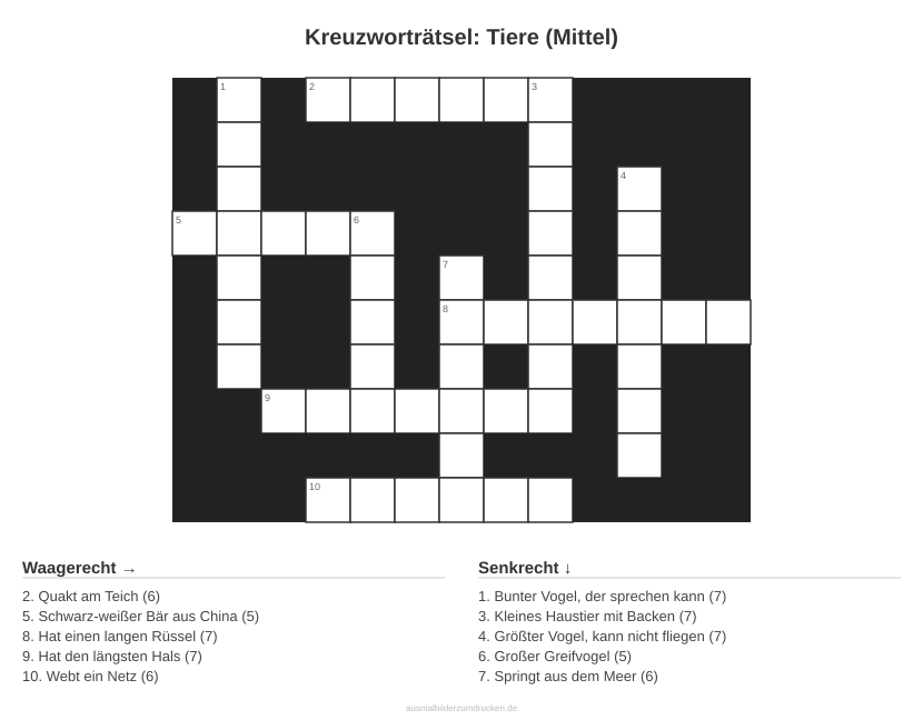 Kreuzworträtsel: Tiere (Mittel)