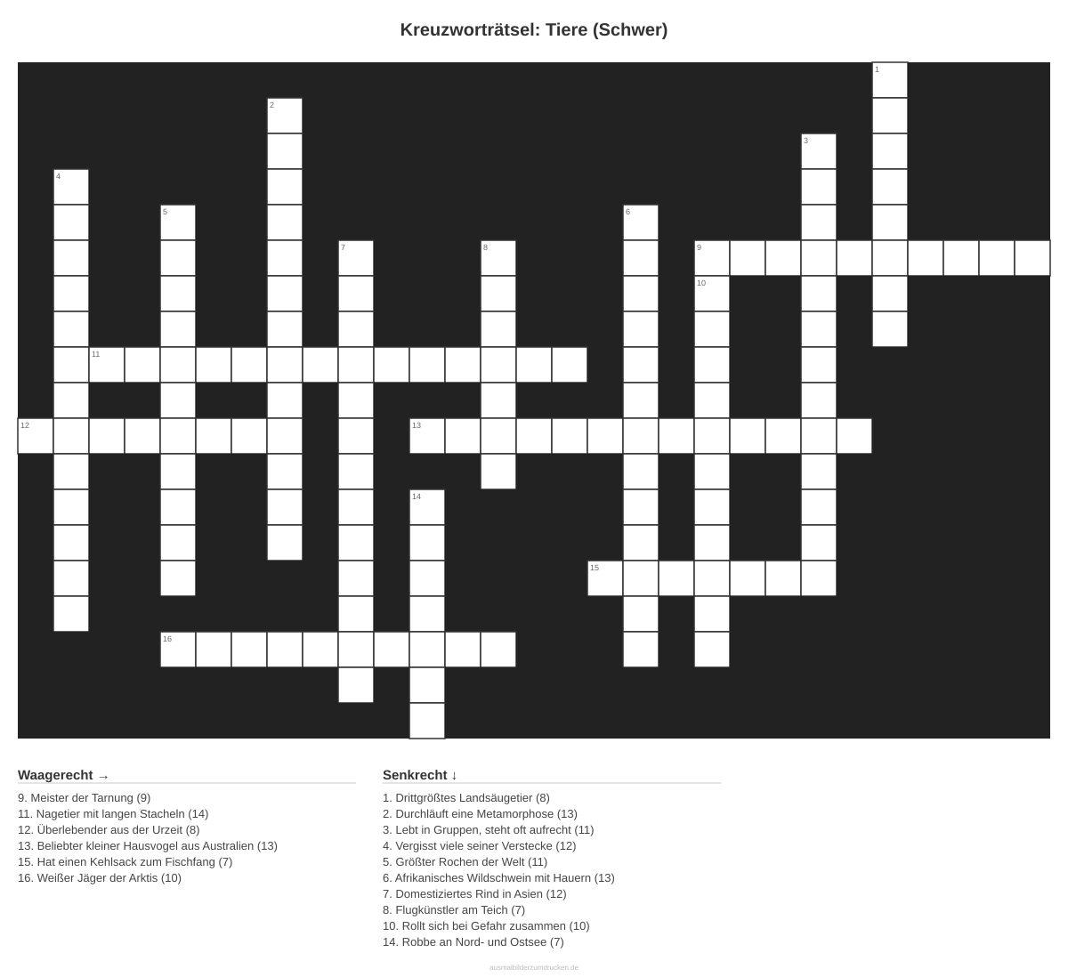 Kreuzworträtsel Kreuzworträtsel: Tiere (Schwer) aus der Kategorie Tiere - kostenlos ausdrucken