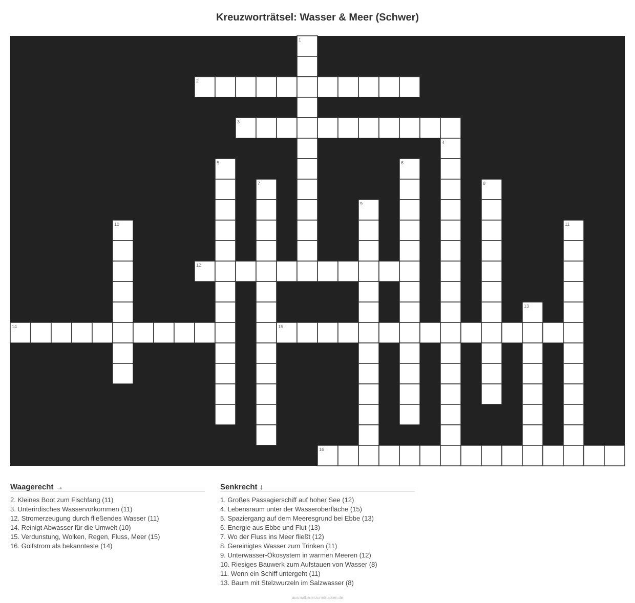 Kreuzworträtsel Kreuzworträtsel: Wasser & Meer (Schwer) aus der Kategorie Wasser - kostenlos ausdrucken