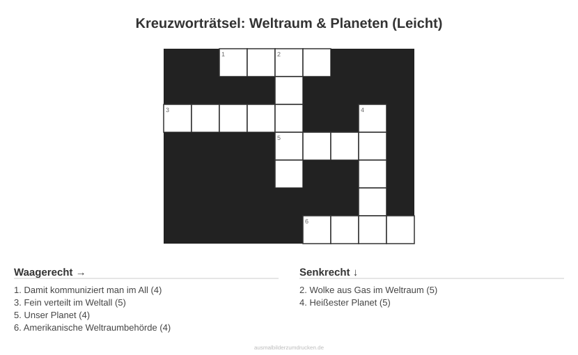 Kreuzworträtsel: Weltraum & Planeten (Leicht) - kostenlos herunterladen