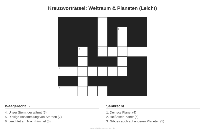 Kreuzworträtsel: Weltraum & Planeten (Leicht)